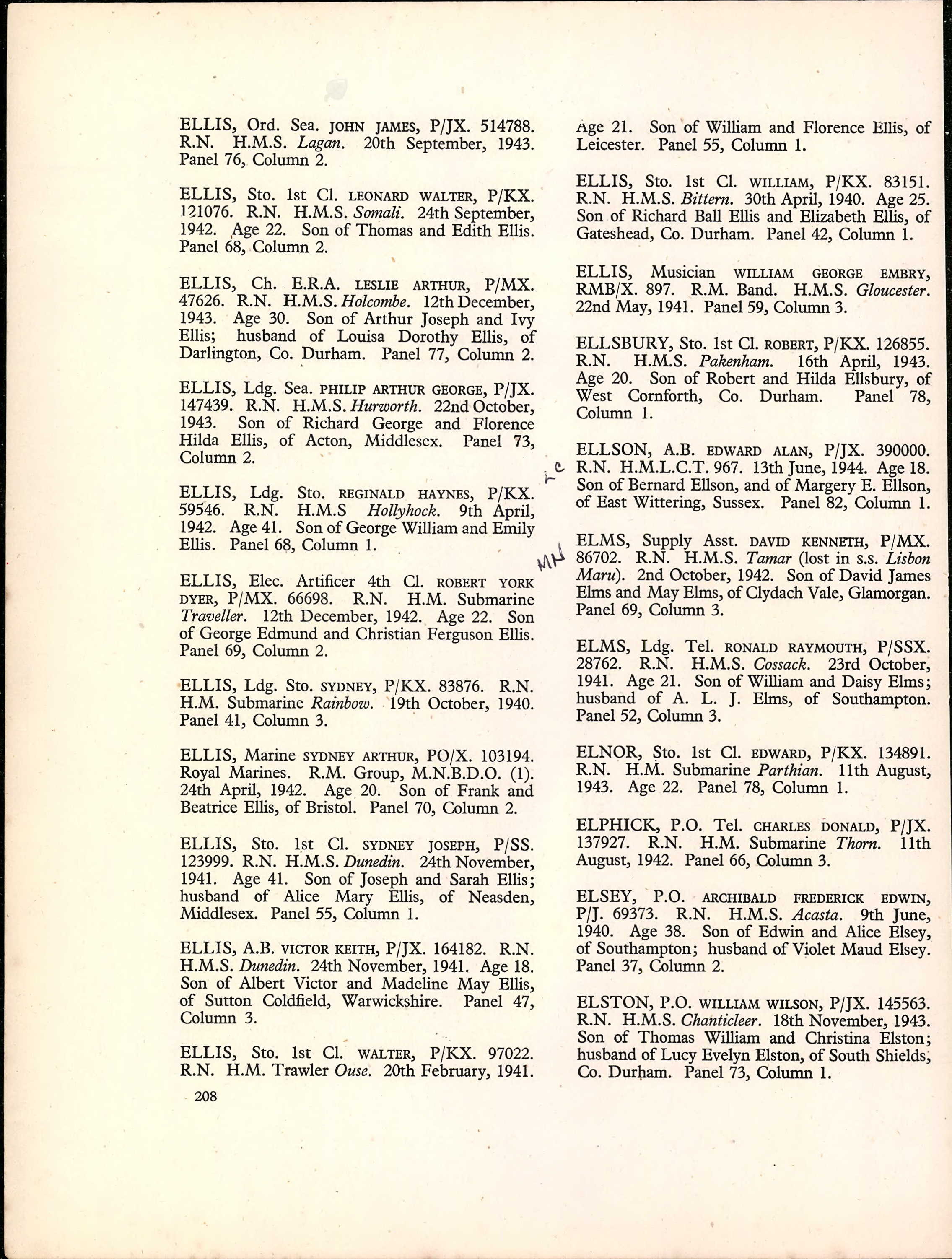 William is also commemorated on the Portsmouth Naval Memorial, panel 59, column 3.