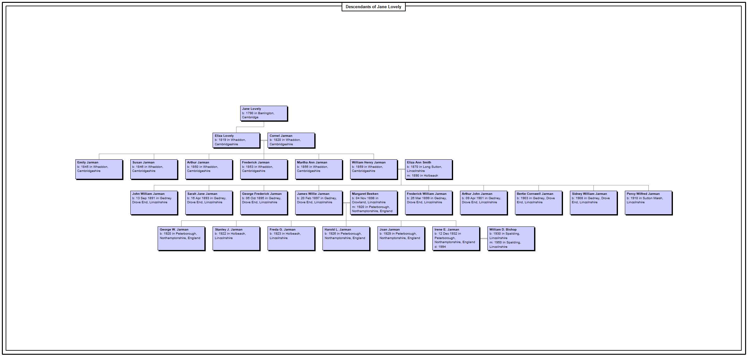 Eliza LOVELY was born in 1819 at Whaddon, Cambridgeshire. She was the daughter of Jane Lovely.